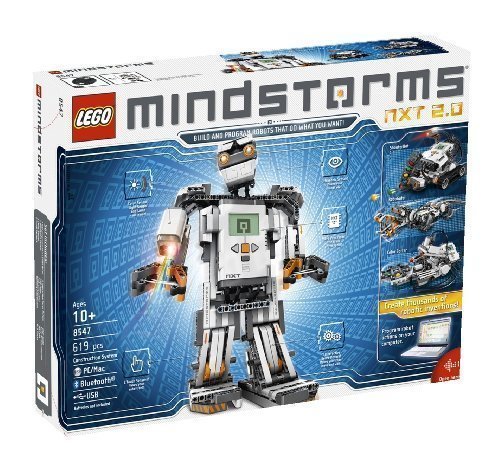 The NXT 2.0 (8547) measures 18.9 x 3.7 x 14.9 inches and weighs 4.4 lbs. The product includes the ultrasonic sensor, NXT programmable Lego brick, interactive servo motors and a couple of touch sensors.